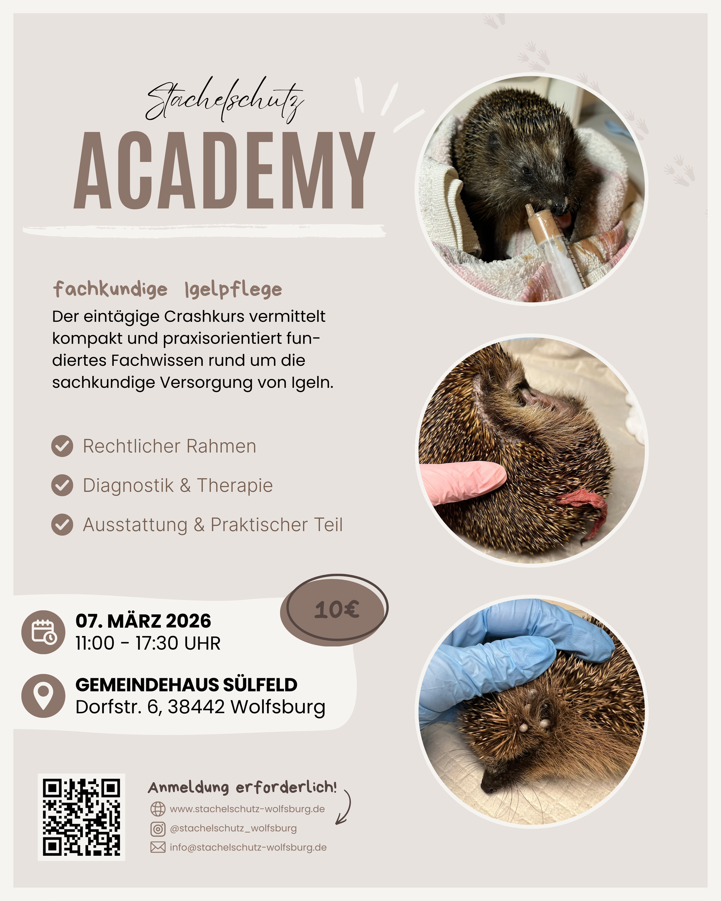 Du möchtest Igeln wirklich helfen – aber richtig? In unserer Stachelschutz Academy vermitteln wir dir an einem Tag fundiertes, praxisnahes Wissen rund um die sachkundige Versorgung von Europäischen Braunbrustigeln.